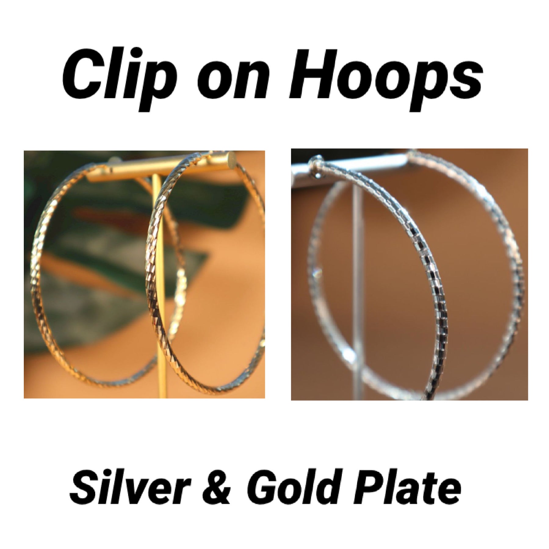 Light weight Clip on hoop earrings, comes in silver or gold plate